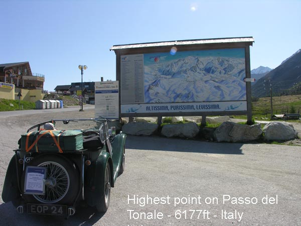 If you read part 1 in last month’s Bulletin you may remember I had driven a little over 1000 miles in 7 days in the MG and climbed through the highest passes in the Swiss Alps. I left you, dear readers, in the rain and snow at Passo del Tonale (6177ft) somewhere in the Italian Alps.