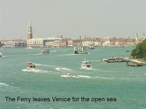 The ferry out of Venice was very spectacular. We were able to see most of the sites of Venice from the vantage point of the top deck as we slowly sailed the full length of the Canale della Guidecca, past the entrance to the Grande Canale and on through the Canale di San Marco, then around Lido Island into the Adriatic Sea.