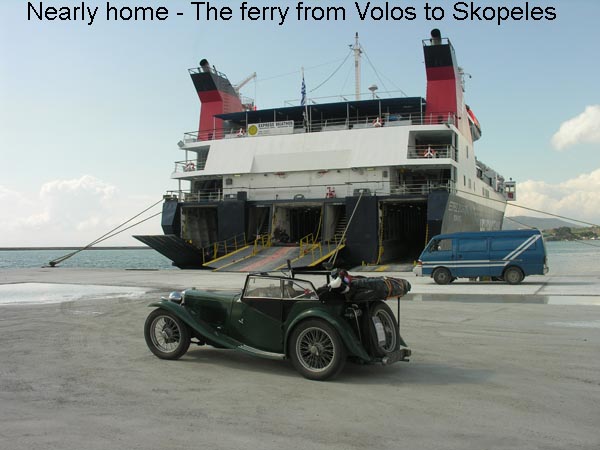 On the morning of 23rd I went to the customs office to arrange the MG importation papers only to be told that they didn’t know what to do. They copied my log book and said they would phone me on Skopelos within a week. Needless to say no one ever called. At the time of writing, 4 months later, I am still trying to sort out the import papers. They say the Greeks invented bureaucracy but made it into an art form.